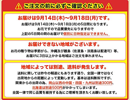 9月15日23:59までにご注文の場合は敬老の日9月18日にお届けが間に合います。以降の注文に関しては順次対応となり、地域によって18日以降のお届けとなります。