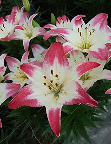 上向きに花が咲くスカシユリの仲間です。 可愛らしいピンクとホワイトのバイカラー。