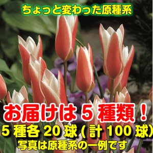 ☆チューリップ(球根) 原種系でちょっと変わった楽しみ方を 5種各20球ミックスで計100球