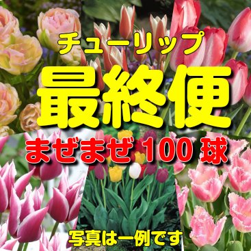 いっぱい植えてチューリップ! いろんなチューリップが全部で100球&おまけ付で合計120球 何でもかまへん!どかんと100球のチューリップをお届け! *お届け先によっては別途送料が発生する場合があります