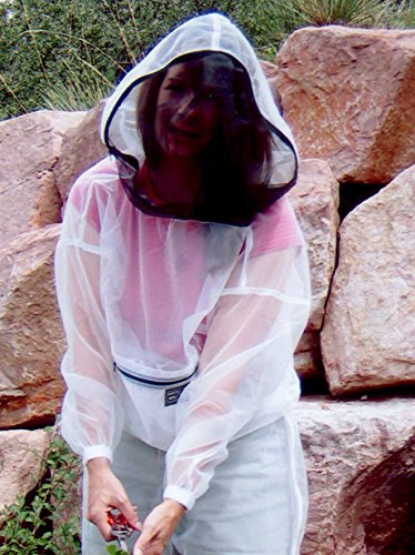 ポリエステル100%の非常に目の細かく、耐久性のあるノーシームメッシュを採用。目の細かい特殊編みメッシュは軍用テントなどにも採用されています。 ポリエステルは難燃性のため燃えにくく、火の延焼を防ぐことができます。また防虫スプレーをかけることもできます。シャツとフードは一体になっており、フードは両サイドから開くダブルファスナーが付いている為、食事をしたり飲み物を飲む時は便利です。 メッシュポケットが付いている為携帯電話や作業用小物入れとしても便利です。またこのポケットは折り畳み収納ポーチにもなります。手首は伸縮素材のため虫の侵入を防ぎます。蚊や蜂は黒っぽい色を好む特性があるため白のメッシュを採用しています。 ガーデニング・ハイキング・釣り・野山での作業に最適です。