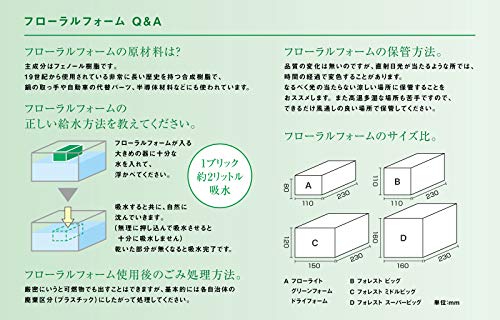 どんな花材にもご使用可能な万能タイプのフローラルフォームです。 マレーシア製ですので、中国製フォームのように夏場にもにおいが出ません。
