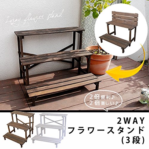 2ウエイフラワースタンド 3段 JSFS3-800 送料無料 二人掛け 天然木 木製 椅子 チェア 玄関 庭 バル/ホワイト