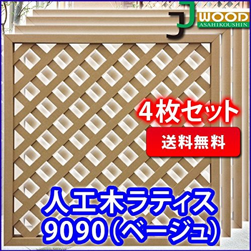 人工木ラティスフェンス 4枚組み ラティス ベージュ ラティス 人工木 ラティス 目隠し ラティス 90 ラティ