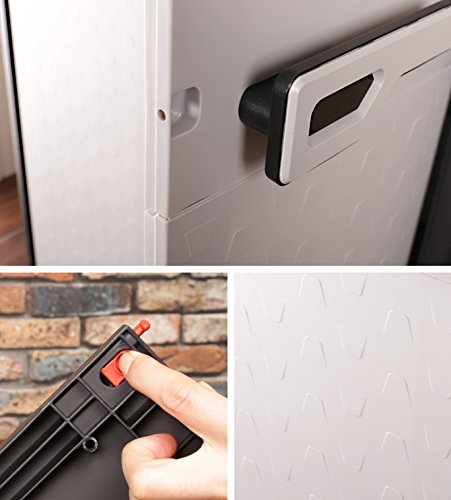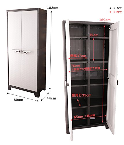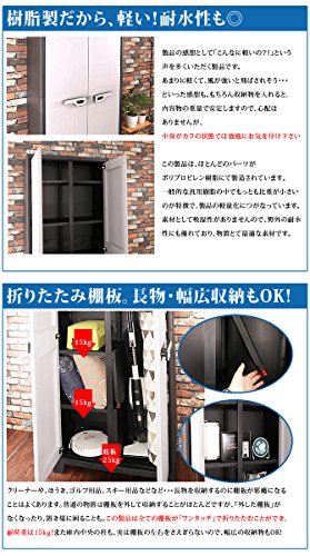 - ■その他・注意事項:/・梱包サイズ:幅80×奥行28.5×高さ45.5cm(17.8kg)/・南京錠などを通す穴が取っ手についています。(南京錠は付属してません)/・防雨仕様:IPX3レベル(軒下等での外での使用可)/※金属製のものと違い商品重量が軽量のため、外に設置する場合は重量のあるものを収納していただくなどして強風に備えてください。