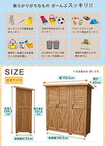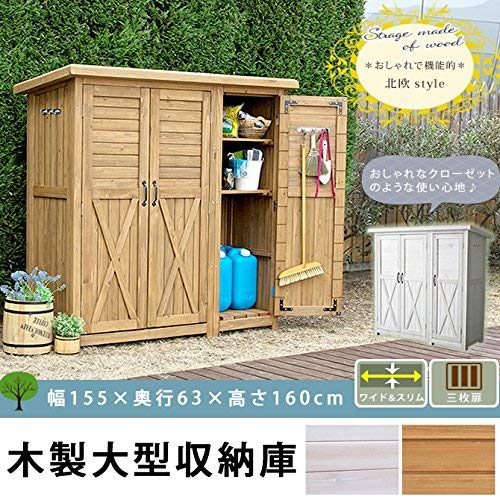 物置 倉庫 収納庫 屋外 天然木 木製 庭 物入れ おしゃれ 大型 北欧 ナ/ライトブラウン(LB)