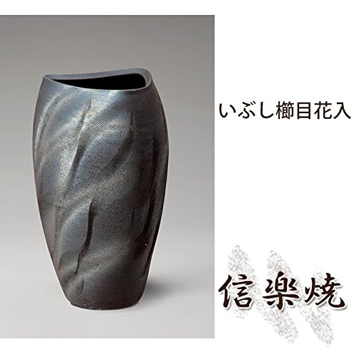 いぶし櫛目花入 伝統的な味わいのある信楽焼き 花瓶 花入れ 和テイスト 陶器 日本製 信楽焼 花器
