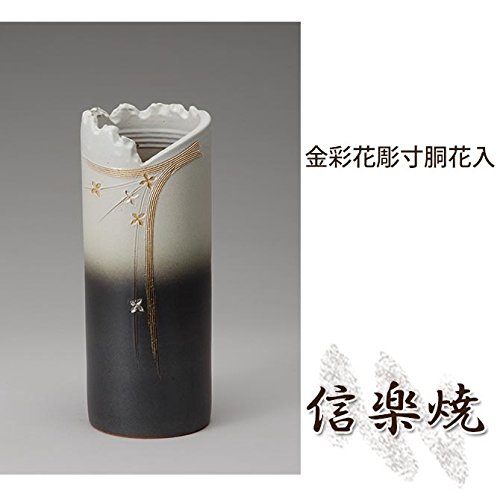 金彩花彫寸胴花入 伝統的な味わいのある信楽焼き 花瓶 花入れ 和テイスト 陶器 日本製 信楽焼 花器