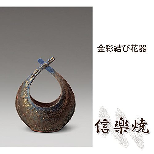金彩結び花器 伝統的な味わいのある信楽焼き 花瓶 花入れ 和テイスト 陶器 日本製 信楽焼 花器 焼