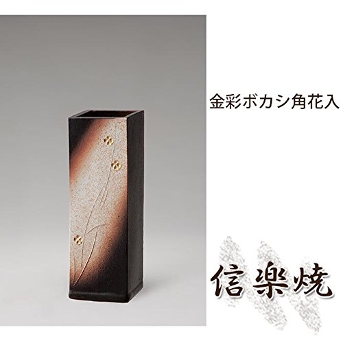 金彩ボカシ角花入 伝統的な味わいのある信楽焼き 花瓶 花入れ 和テイスト 陶器 日本製 信楽焼 花器