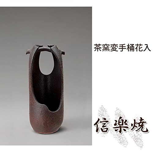 茶窯変手桶花入 伝統的な味わいのある信楽焼き 花瓶 花入れ 和テイスト 陶器 日本製 信楽焼 花器