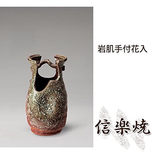 岩肌手付花入 伝統的な味わいのある信楽焼き 花瓶 花入れ 和テイスト 陶器 日本製 信楽焼 花器 焼