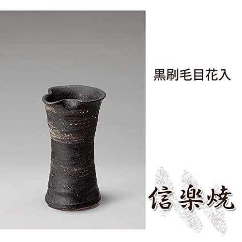黒刷毛目花入 伝統的な味わいのある信楽焼き 花瓶 花入れ 和テイスト 陶器 日本製 信楽焼 花器 焼