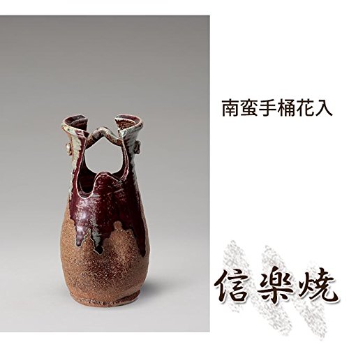 南蛮手桶花入 伝統的な味わいのある信楽焼き 花瓶 花入れ 和テイスト 陶器 日本製 信楽焼 花器 焼