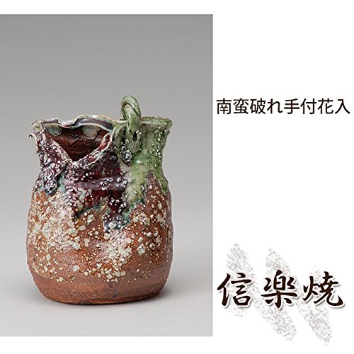 南蛮破れ手付花入 伝統的な味わいのある信楽焼き 花瓶 花入れ 和テイスト 陶器 日本製 信楽焼 花器