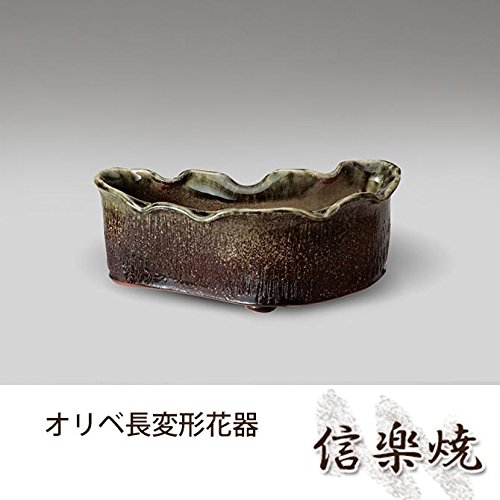 オリベ長変形花器 伝統的な味わいのある信楽焼き 花瓶 花入れ 和テイスト 陶器 日本製 信楽焼 花器