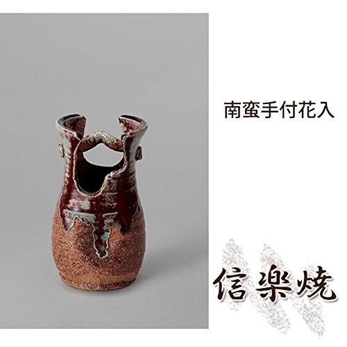 南蛮手付花入 伝統的な味わいのある信楽焼き 花瓶 花入れ 和テイスト 陶器 日本製 信楽焼 花器 焼
