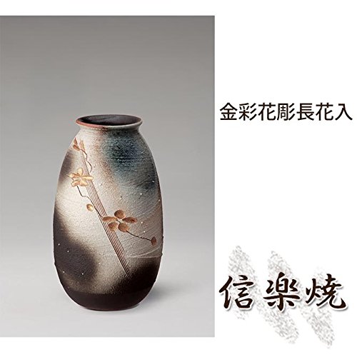 金彩花彫長花入 伝統的な味わいのある信楽焼き 花瓶 花入れ 和テイスト 陶器 日本製 信楽焼 花器