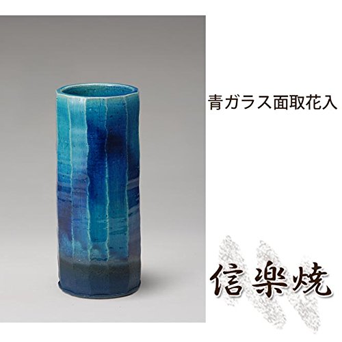 青ガラス面取花入 伝統的な味わいのある信楽焼き 花瓶 花入れ 和テイスト 陶器 日本製 信楽焼 花器