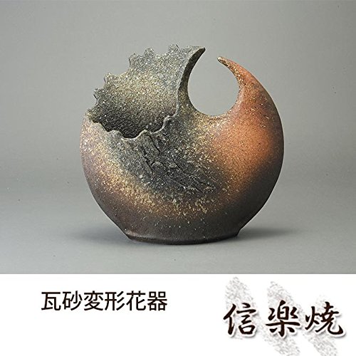 瓦砂変形花器 伝統的な味わいのある信楽焼き 花瓶 花入れ 和テイスト 陶器 日本製 信楽焼 花器 焼