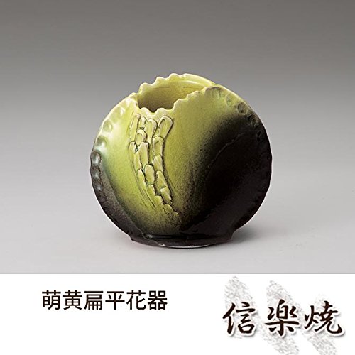 萌黄扁平花器 伝統的な味わいのある信楽焼き 花瓶 花入れ 和テイスト 陶器 日本製 信楽焼 花器 焼