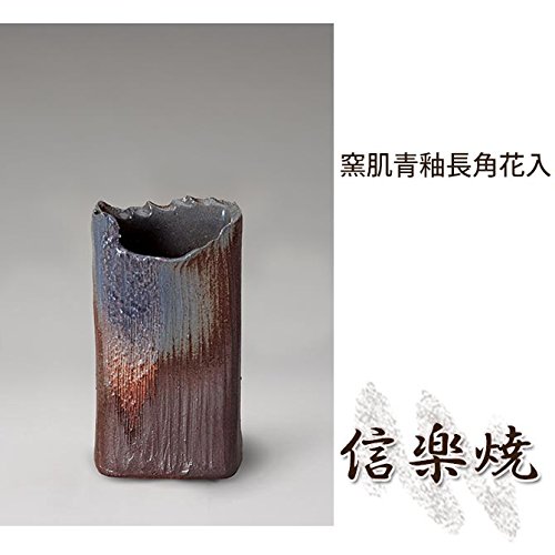 窯肌青釉長角花入 伝統的な味わいのある信楽焼き 花瓶 花入れ 和テイスト 陶器 日本製 信楽焼 花器
