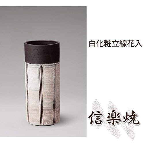 白化粧立線花入 伝統的な味わいのある信楽焼き 花瓶 花入れ 和テイスト 陶器 日本製 信楽焼 花器