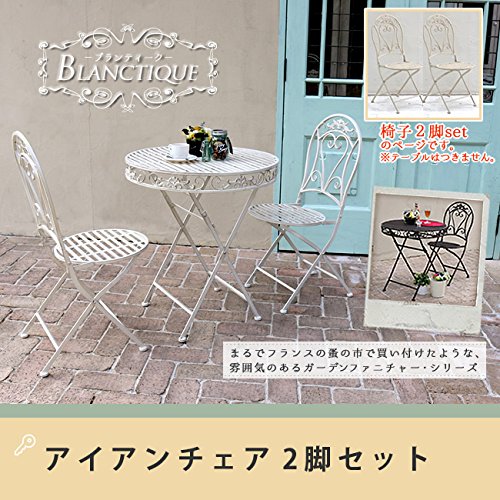 ブランティーク アイアンチェア 2脚セット 送料無料 ガーデンテーブル テラス 庭 ウッドデ/ホワイト