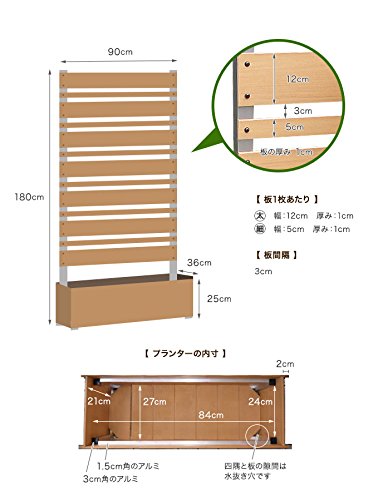 ガーデンフェンス 木製 日本製 高さ180cm 3cm間隔 ボックス付き/ココア