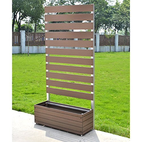 ガーデンフェンス 樹脂 フラット1890 プランター付き アルミの柱 ブラウン 人工木 フェンス 樹脂 防腐 目隠