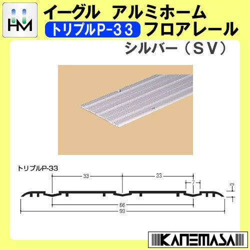 アルミホームフロアレール 【イーグル】 ハマクニ トリプルP-33 4000mm シルバー(SV) 【10本梱包売り】 433-056