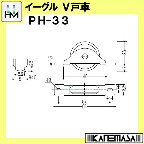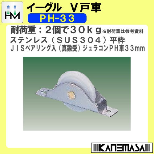 V戸車 【イーグル】 ハマクニ PH-33 Φ33 ステンレス(SUS304)平枠 JISべリング入(真鍮受)ジュラコンPH車 【200個売り】 429-005