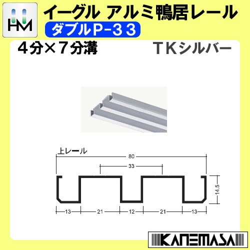 アルミ鴨居 (上) レール 【イーグル】 ハマクニ ダブルP-33-3000mm TKシルバー 436-200