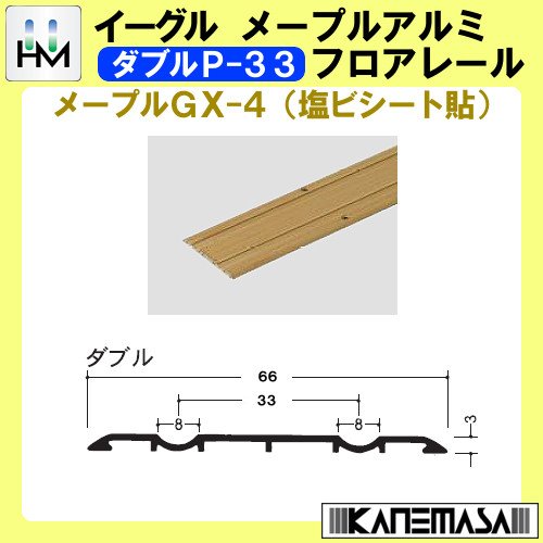 メープルアルミフロアレール 【イーグル】 ハマクニ ダブルP-33 4000mm メープルGX-4(塩ビシート貼り) 【20本梱包売り】 433-725