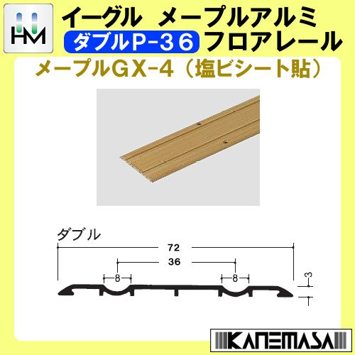 メープルアルミフロアレール 【イーグル】 ハマクニ ダブルP-36 2000mm メープルGX-4(塩ビシート貼り) 【20本梱包売り】 433-726