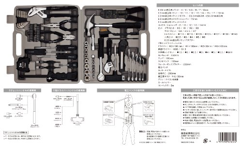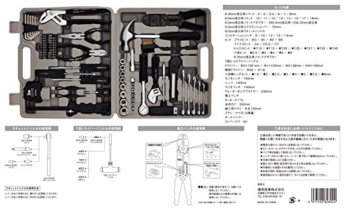 - セット内容:六角棒レンチ(1.5・2・2.5・3・4・5・5.5・6)・モンキレンチ・ニッパ・ラジオペンチ