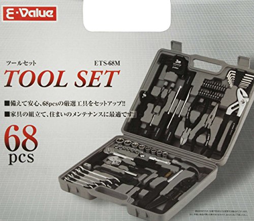 家具の組み立て、住まいのメンテナンスに最適な、備えて安心、68pcsの厳選工具をセットアップしている。