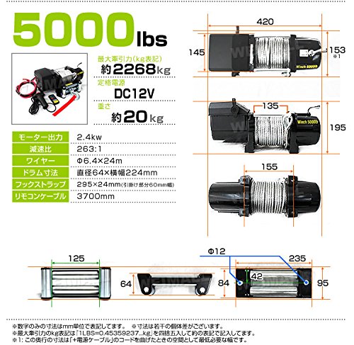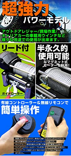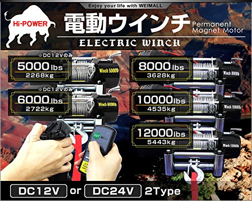 電動ウインチ 12V 5000LBS(2268kg) 無線リモコン付属 電動 ウインチ オフロード車 トラック SUV車(ZeepやFJクルーザー等) 防水仕様