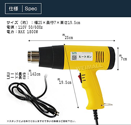 ホットガン ヒートガン 超強力 1800W 2段階切換 アタッチメント付 熱処理