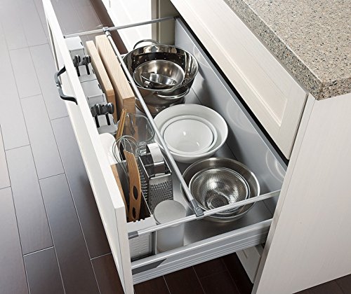 スイージーのシンクキャビネットに標準装備されているステンレス収納ポケットで、シンクキャビネットのサイズに合わせて取付けます。