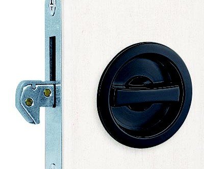後付け用の間仕切り錠セットです。錠ケースと枠側錠受けがセットになっています。工場より出荷する場合と金具の形状が変わりますので、引き戸・枠の加工穴に追加加工が必要となります。