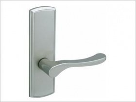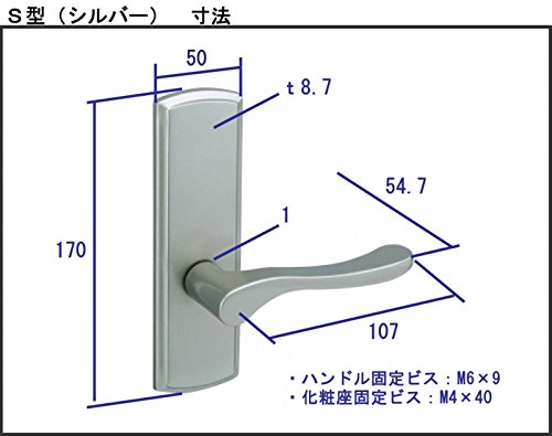 ドアのレバーハンドルです。表面をシルバー色の塗装で仕上げ(艶はありません)しています。