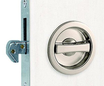 後付け用の表示錠セットです。錠ケースと枠側錠受けがセットになっています。工場より出荷する場合と金具の形状が変わりますので、引き戸・枠の加工穴に追加加工が必要となります。