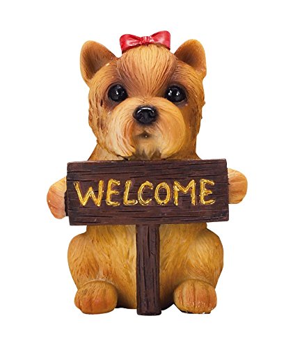 - 特長1:ウェルカムボードを持ったかわいらしい犬の置物。