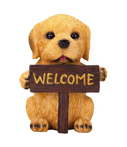 - 特長1:ウェルカムボードを持ったかわいらしい犬の置物。