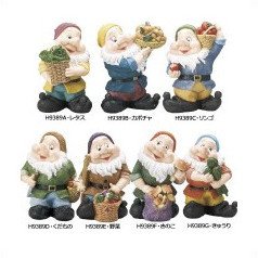 とってもかわいい表情の小人たちです。 7人それぞれが果物や野菜を持って、畑仕事しています。歌声や笑い声が今にも聞こえてきそうです♪ぜひ7人全員を揃えて、お庭などを明るく飾りたいですね! 製造国:中国 素材・材質:ポリレジン 商品サイズ:H38cm