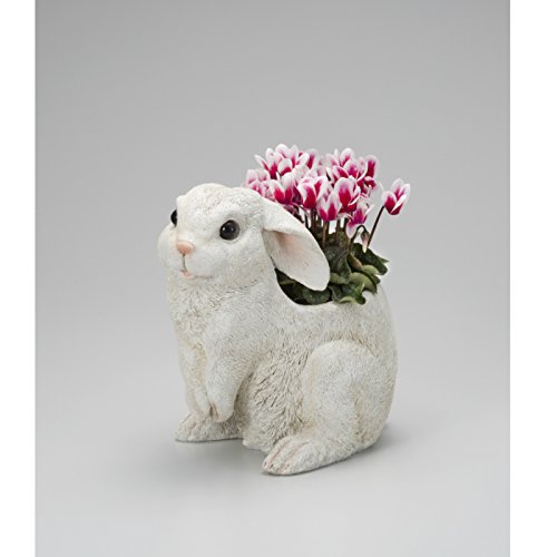 真っ白いウサギの背中がプランターになっています。あなたのお庭を彩ってくれます。