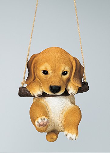 紐で吊り下げるブランコに乗ったかわいい子犬や猫がかわいく庭を彩ります。