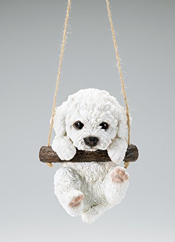 紐で吊り下げるブランコに乗ったかわいい子犬や猫がかわいく庭を彩ります。