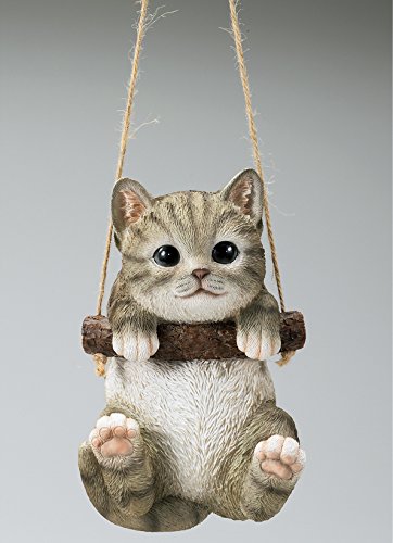 紐で吊り下げるブランコに乗ったかわいい子犬や猫がかわいく庭を彩ります。
